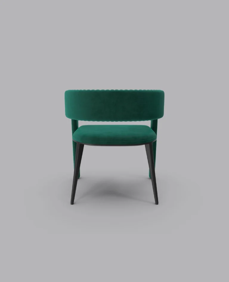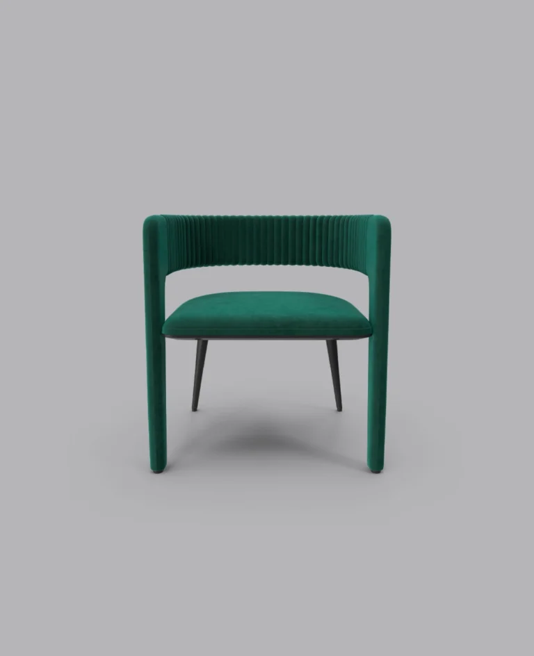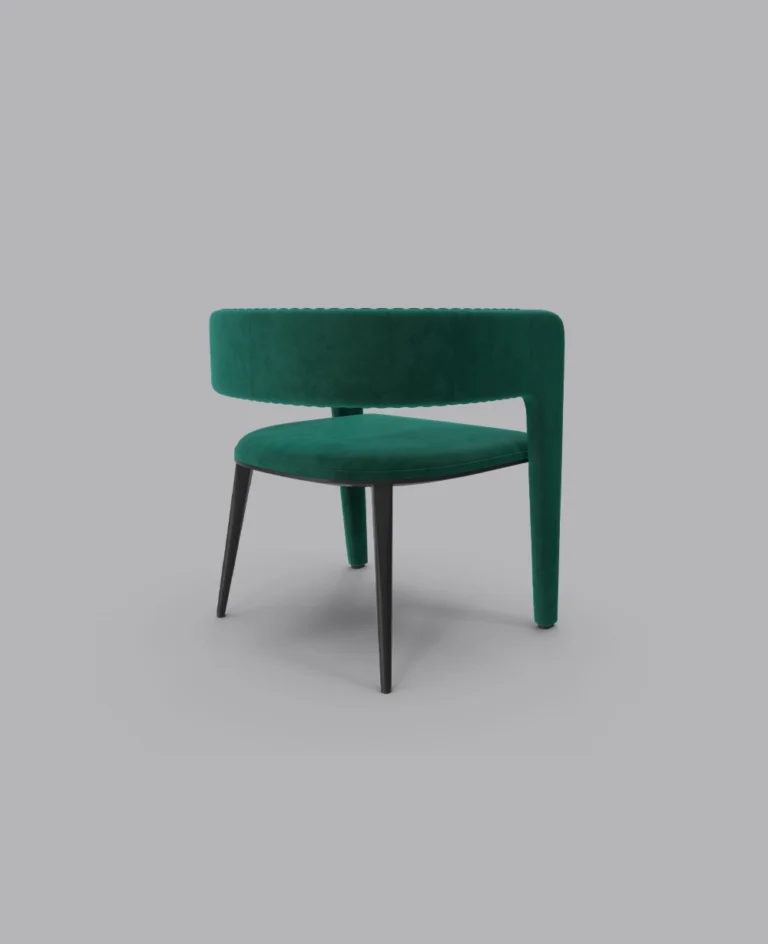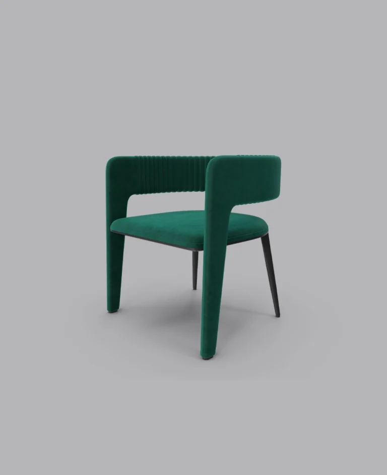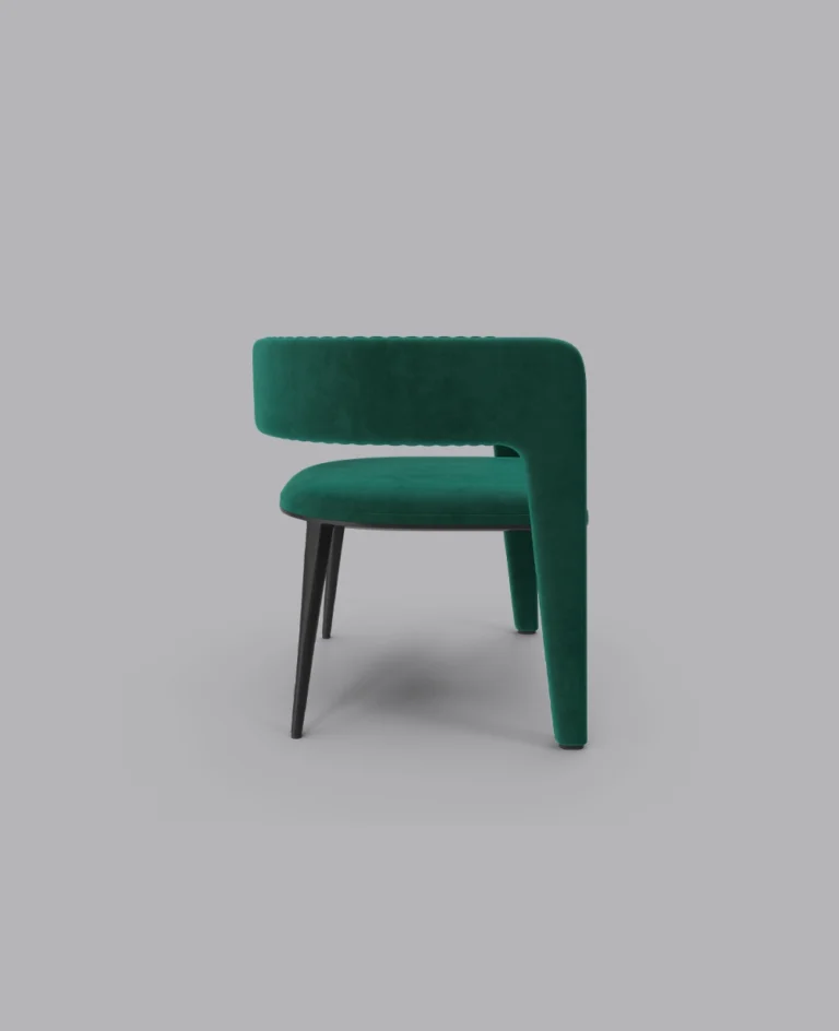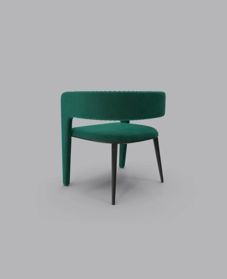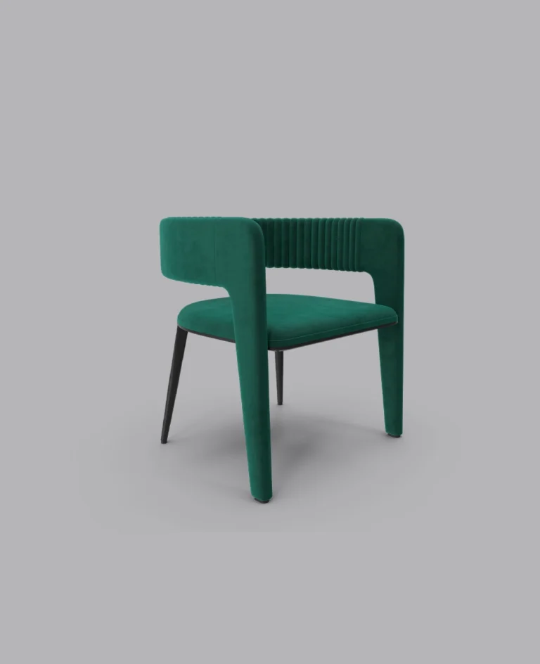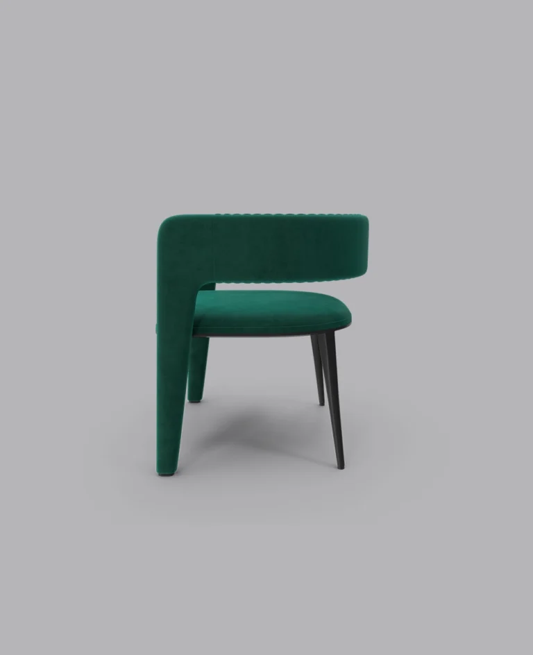 The Velvet Curve chair combines modern elegance with luxurious comfort. Wrapped in soft, plush velvet, its unique curved design offers both style and ergonomic support. The ribbed detailing on the backrest adds a refined touch, while the slim, tapered legs provide a sleek, modern silhouette. Whether used as an accent chair or dining chair, the Velvet Curve is a versatile addition to any contemporary space, blending sophistication with a pop of color.